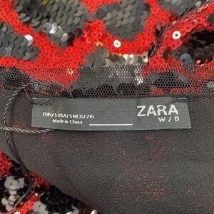 ZARA Dress Leopard Sequin Minidress Red/Black Size Small Low Back