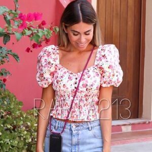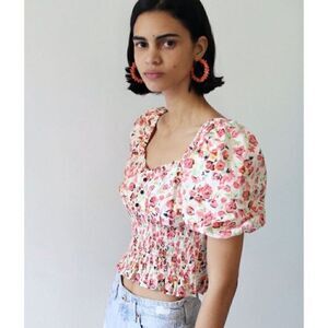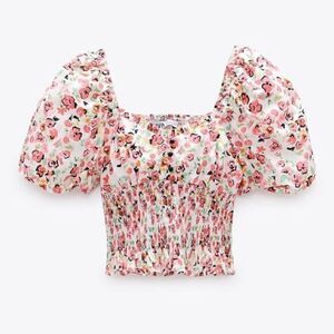 ZARA ELASTIC TRIM FLORAL PRINT TOP