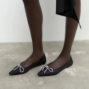 Ballet flats in fabric. Embellished bow detail on the front. Square-cut vamp. Pointed toe.