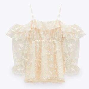 ZARA EMBROIDERED RUFFLED BLOUSE