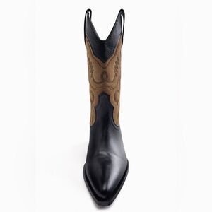 ZARA EMBROIDERED LEATHER COWBOY ANKLE BOOTS