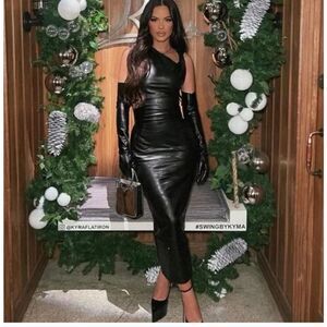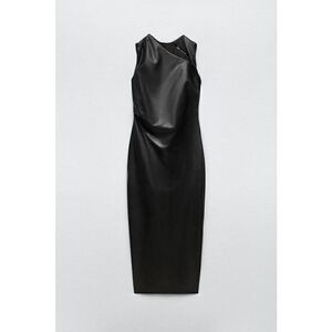 ZARA FAUX LEATHER MIDI BLACK DRESS NWT BLOGGERS FAV