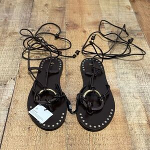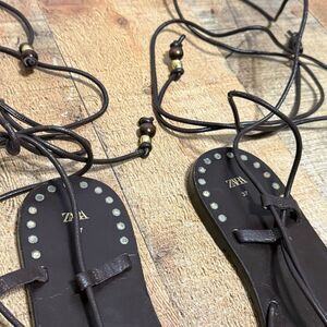 ZARA FLAT LEATHER SANDALS WITH DECORATIVE DETAIL