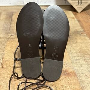 Flat leather sandals. Front thin strap detail with metal & stud embellishments. 0.4 inches heel height