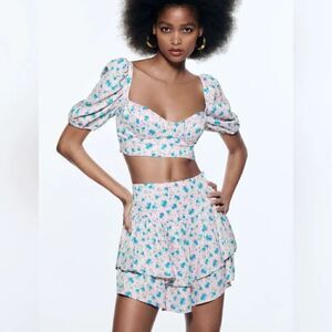 ZARA FLORAL SATIN EFFECT RUFFLED SKIRT