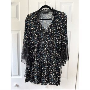 ZARA black floral mini dress with all over ruffle detail and half tulle sleeves.