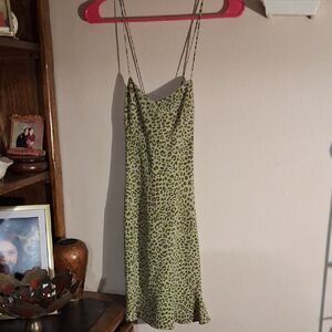 Stylish leopard print slip dress with thin straps. Perfect for a chic look.