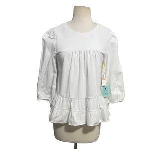 ZARAKNIT sleeveless blouse with knit and linen style combination textures top and bottom panels. V-neck sleeveless knit ivory blouse. 63% acrylic 37% rayon. Front length is 26” back length is 32”