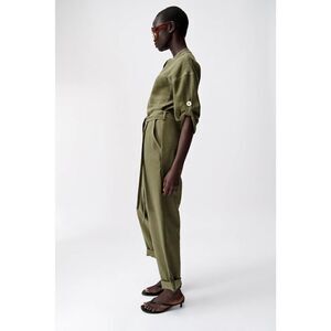 ZARA Khaki Lyocell Jumpsuit Contrasting Stitching