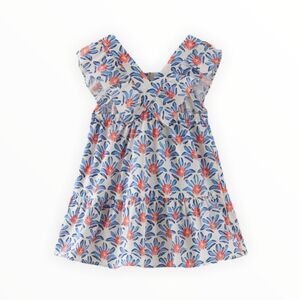 Charming floral poplin dress from Zara Kids, featuring a soft cotton fabric with a vibrant blue and coral flower pattern. Lightweight, breathable, and perfect for warm days or special occasions.