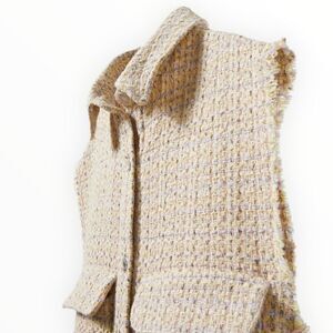 Keywords: Zara Kids Vest, Tweed Style Vest, Girls Tan Button Vest, Structured Frayed Vest, Elegant Layering Piece.