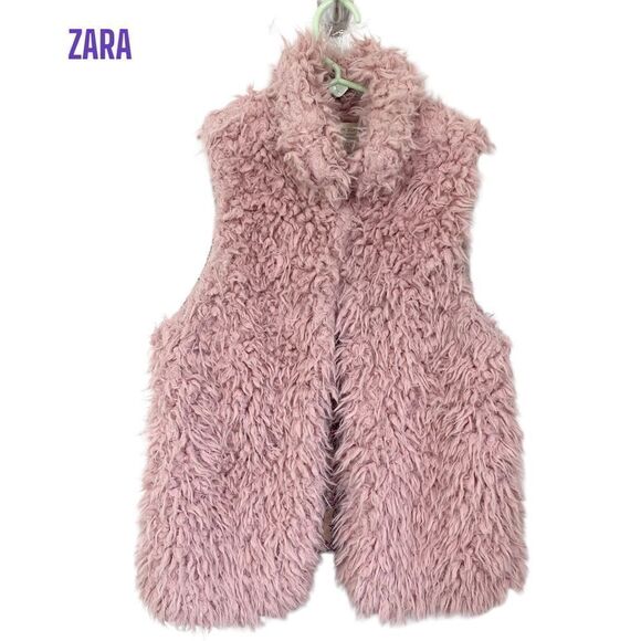 ZARA Kids pink faux fur fuzzy Barbie style vest in size 13-14