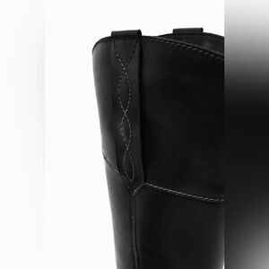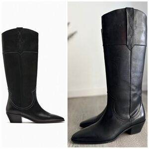 Knee high cowboy boots in leather. Side pull tabs. Block heels. Pointed toe.