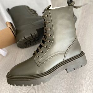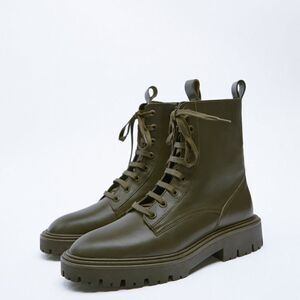 ZARA LEATHER LACE-UP FLAT ANKLE BOOTS