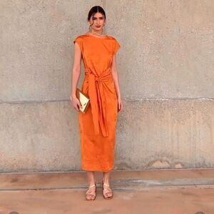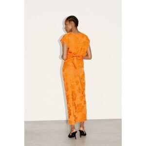 ZARA LONG JACQUARD DRESS ORANGE NEW