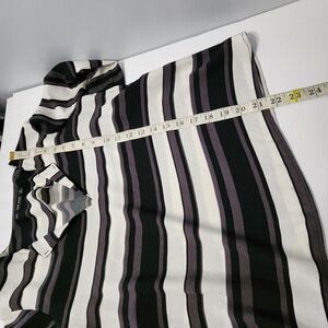 This ZARA blouse top in size XS is a stylish piece perfect for any wardrobe. The striped pattern in white, black, and purplish grey is eye-catching, and the slit sleeves and V-neckline add a unique touch. Made of polyester, this blouse is machine washable for easy care.