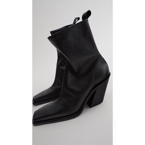 ZARA Leather Cowboy Ankle Boots Black Pointed Toe Block Heel EU 39 US 8