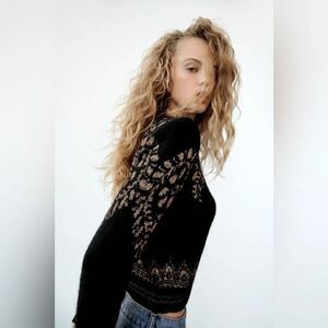 ZARA METALLIC THREAD JACQUARD KNIT SWEATER