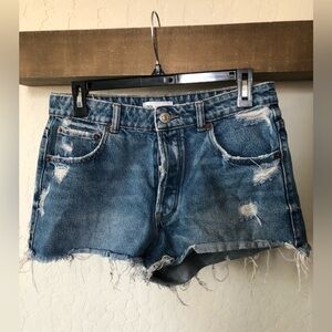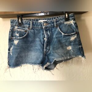 ZARA|Medium wash distressed cut off denim shorts, size 6•••Beachy Summer style