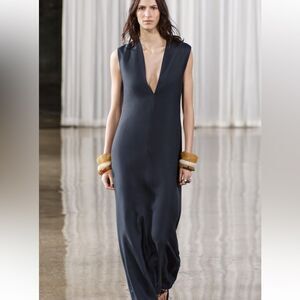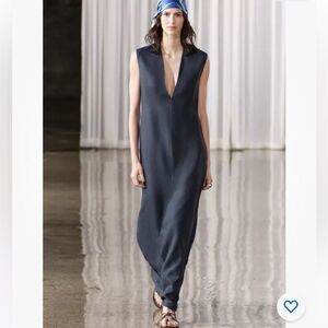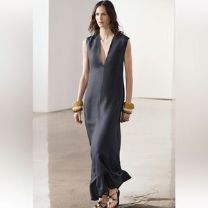 ZARA NWT $169 LONG V-NECK DRESS ZW COLLECTION BLUE / INDIGO