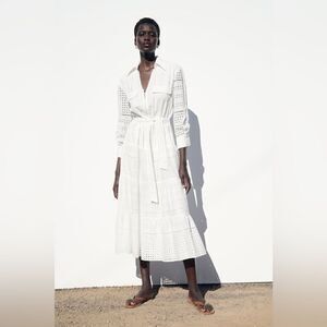 ZARA NWT WOMAN V-NECK OPENWORK EMBROIDERED MIDI DRESS WHITE ZIP