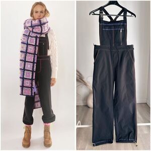 Jumpsuit with a straight-cut neckline and adjustable straps with clips. Featuring side pockets, chest patch pockets, a false welt pocket at the back, an adjustable hem with drawstrings and stopper, contrast seams and thermo-sealed side zip fastening.
