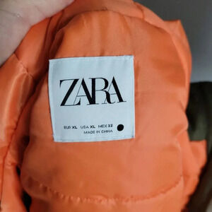 ZARA, NWT, Cropped Nylon Hooded Zip Front Army Green Khaki Puffy Vest, Size XL