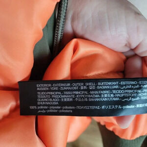 Cropped Silhouette. Banded Hem. Nylon Fabrication. Army Green w/ Orange Lining.