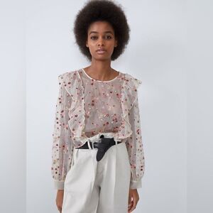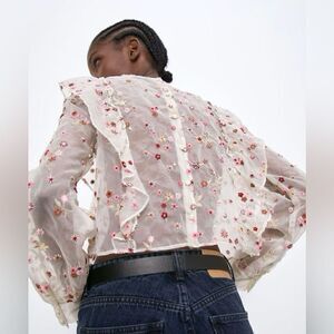 ZARA ORGANZA CROPPED FLORAL BLOUSE