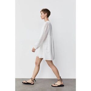 ZARA Openwork Embroidered Long Sleeve White Dress Lined Oversized