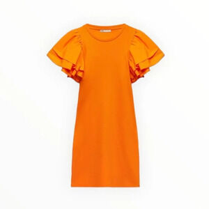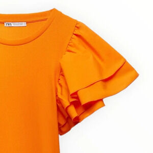 ZARA | Orange | RUFFLED RIB DRESS