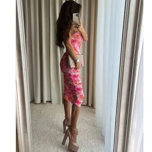 ZARA PRINTED TULLE MIDI DRESS PINK FLORAL