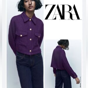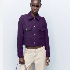ZARA PURPLE TEXTURED CROPPED JACKET