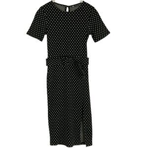 ZARA Polka Dot Bodycon Belted Side Slit, Size Small, Black/White