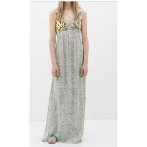 ZARA printed maxi dress. Back cutout detail. Concealed side zipper. 100% viscose. 2 side leg slits. Brand new without tags