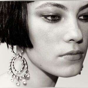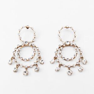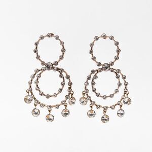 Round-shaped metallic earrings in different sizes with rhinestone appliqués. Push-back fastening.