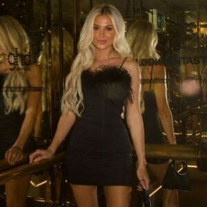 ZARA RHINESTONE FEATHER DRESS MINI BLACK
