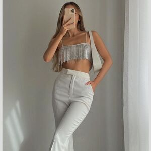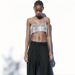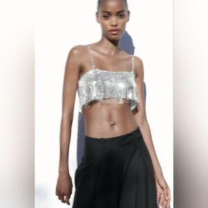 ZARA RHINESTONE FRINGE CROP TOP NWT