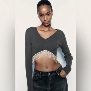 ZARA SOFT CROP TOP WITH RHINESTONES