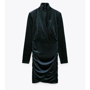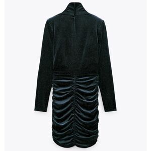 ZARA RUCHED SPARKLY VELVET DRESS GREY MINI