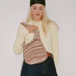 ZARA RUFFLED CROCHET SHOPPER HANDBAG