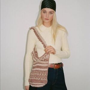 ZARA RUFFLED CROCHET SHOPPER HANDBAG