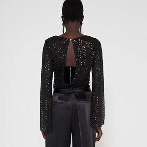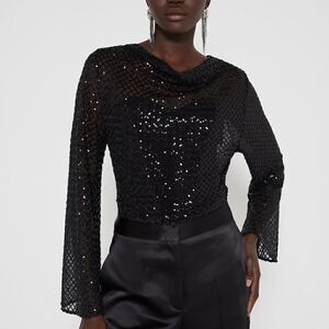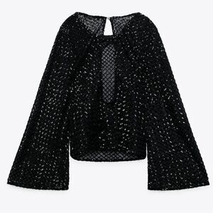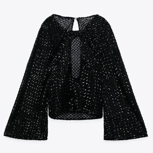 ZARA BLACK SEQUIN MESH TOP FLARED BELL SLEEVES