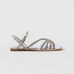 Sandals with shimmer detail on the straps and an iridescent insole. Side buckle fastening. Contrast rubber sole.