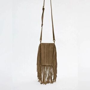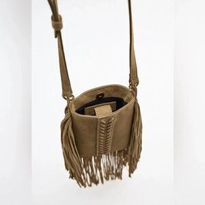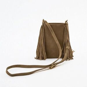 ZARA SPLIT GENUINE SUEDE LEATHER FRINGED BAG