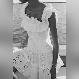 Ivory white ruffled strapless Zara mini dress in size XS. Embroidered