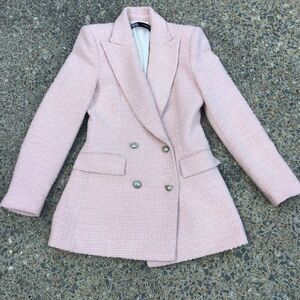 ZARA TEXTURED TWEED DOUBLE BREASTED BLAZER PINK