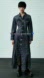 Long lapel collar dress with long sleeves and cuffs. Patch pockets with flaps at chest. Front metal button closure.