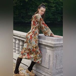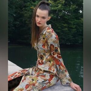 ZARA TROPICAL PRINT SATIN EFFECT DRESS
