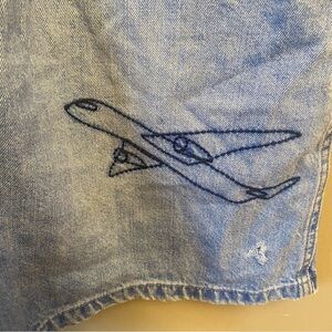 ZARA/Trafaluc Short Overalls Shortalls Denim Embroidered Medium Airplane